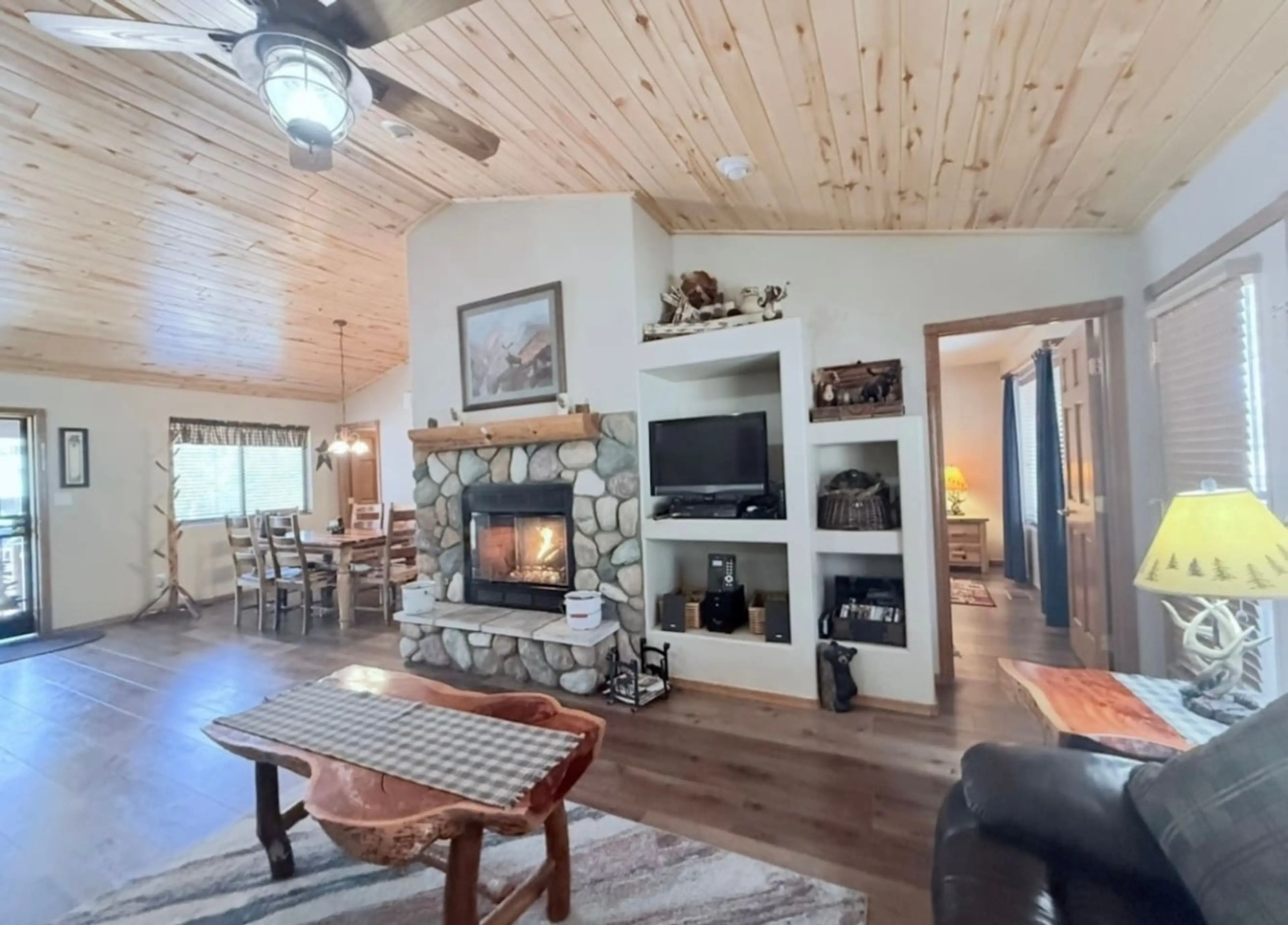 A Beautiful Two Bedroom Two Bathroom Cabin . Located in the White Mountains. A fenced in backyard . There are hiking trails, trails for ATV s , horseback riding within walking distance of cabin. 5 lakes within a 25 mile radius of cabin . Catch and release pond about 100 yards out the back door. Ther...